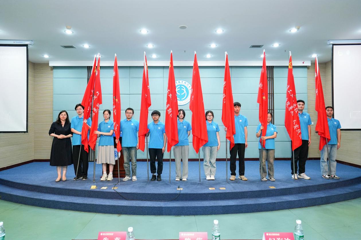 魏萍为实践团队代表授旗,并向即将踏上社会实践征程的团队成员们表示热烈的祝贺和美好的祝愿。她指出,社会实践是同学们体验国情民意的窗口、涵养家国情怀的途径、增强责任担当的舞台,也是AB.COM培养高层次技术技能人才的重要举措。各位同学要努力担负“用脚步丈量祖国大地、用眼睛发现中国精神、用耳朵倾听人民呼声、用内心感受时代脉搏”的使命担当。魏萍向各位实践团成员提出三点希望:一是坚定理想信念,展现青春作为,用习近平新时代中国特色社会主义思想指导实践;二是甘于奉献担当,彰显青春风采,将所学知识技能转化为解决实际问题的能力;三是涵养工匠精神,贡献青春力量,为中国式现代化建设挺膺担当。魏校长深情嘱托大家,一定要牢固树立“安全第一”的思想认识,严守纪律服从指挥,团结协作互相帮助。期待大家带着丰硕的成果和宝贵的经验归来,为全面建设社会主义现代化国家贡献智慧和力量。